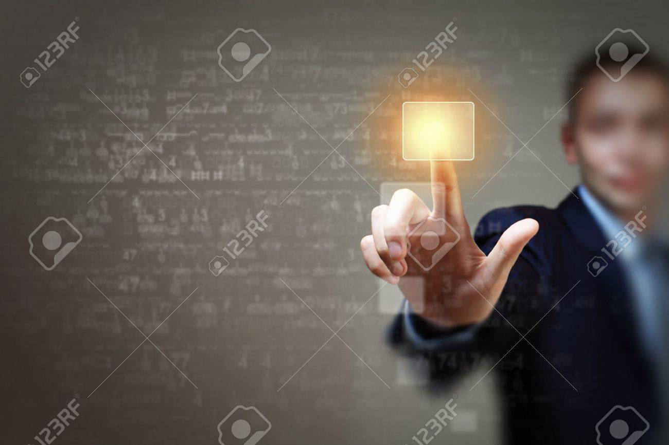 Business man touching virtual display Business and technology concept