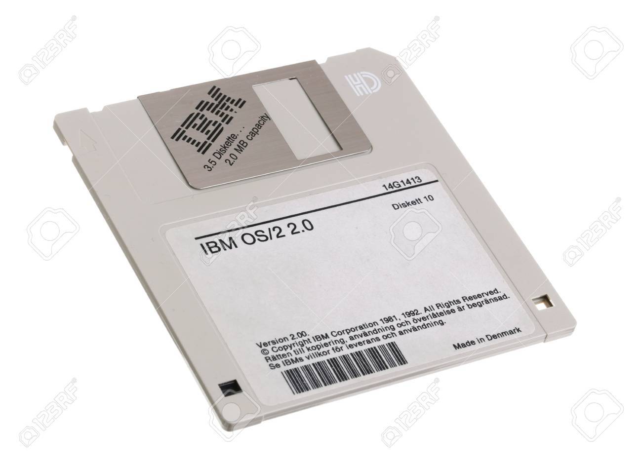 IBM OS2 2.0 operating system distribution diskette isolated on white.