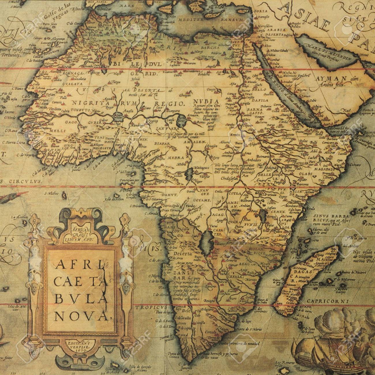 Stock Photo - Reproduction of 16th century map of Africa engraved and colored by the famous dutch cartographer Abraham Ortelius